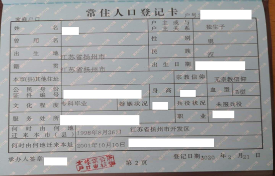 户口簿(考生本人信息单页)