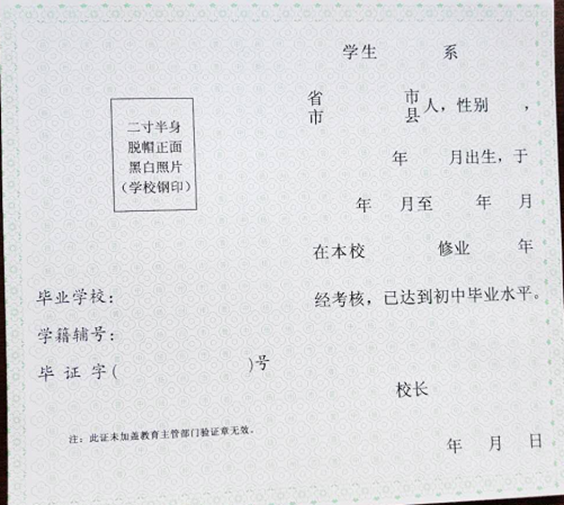 初中毕业证书(样张)